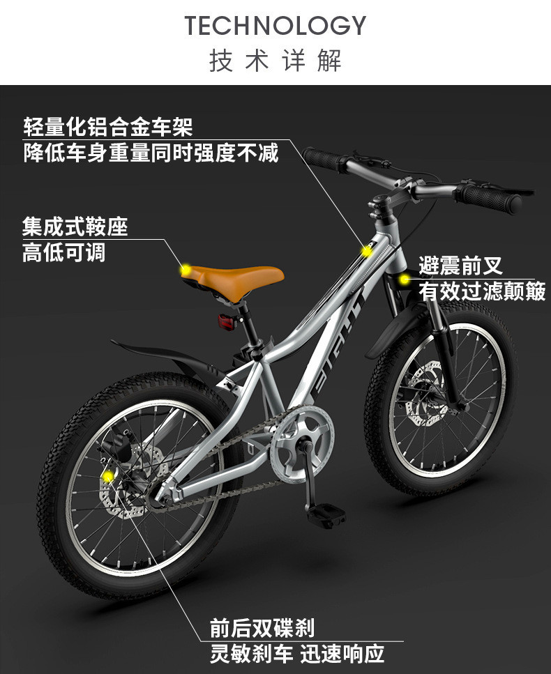 • 商品名称:碟刹变单速20寸男女小中学生脚踏车儿童表演山地自行车