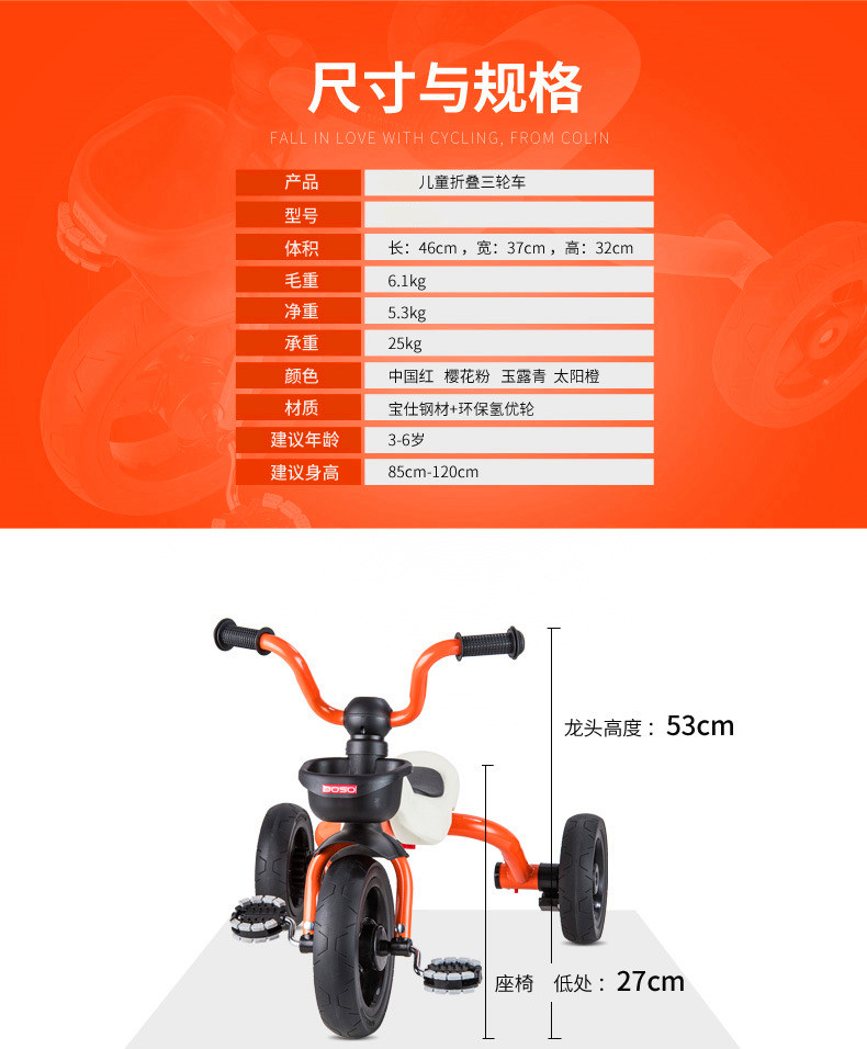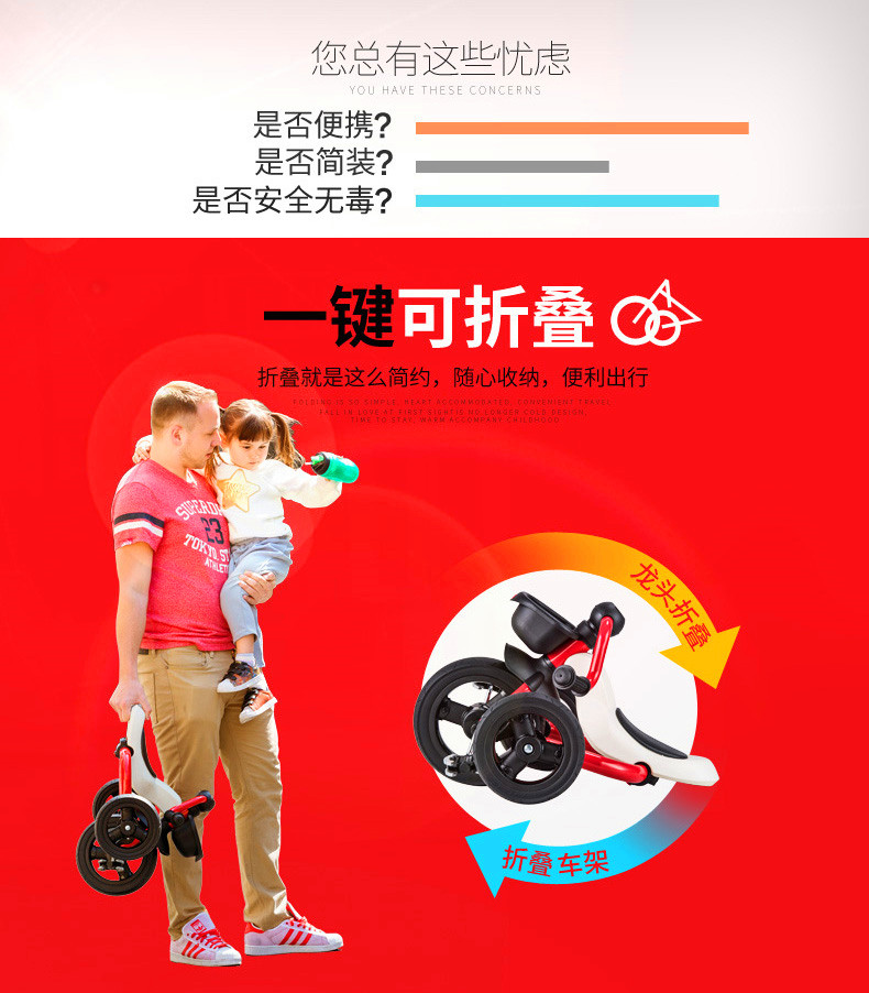 • 商品名称:折叠脚踏车 1-3岁婴幼儿小孩童车 儿童三轮车