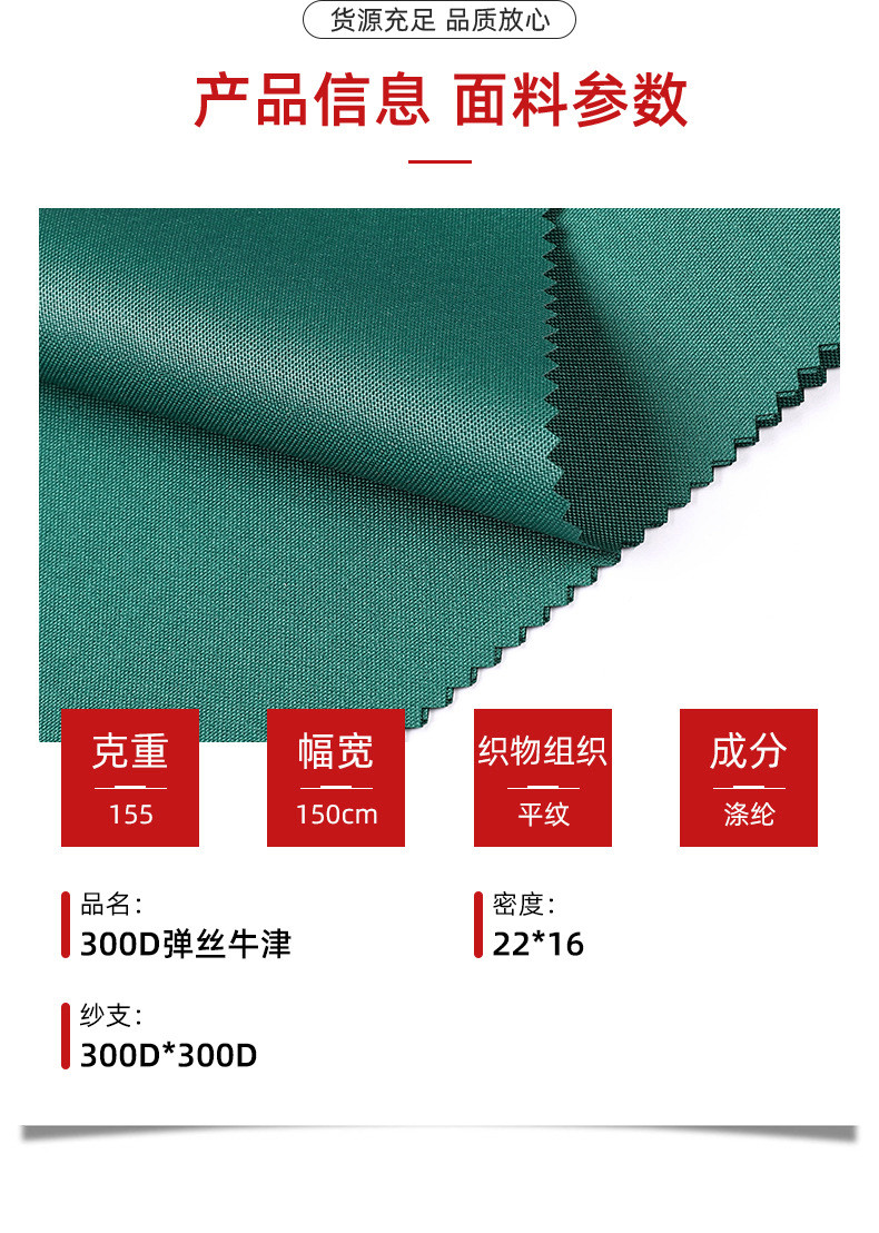 • 商品名称:300D弹力防水弹丝牛津牛津布面料户外野营防晒帐篷箱包遮阳帆布料