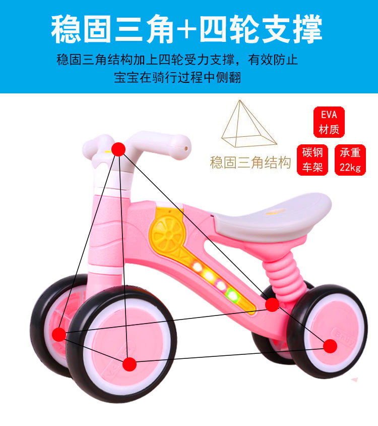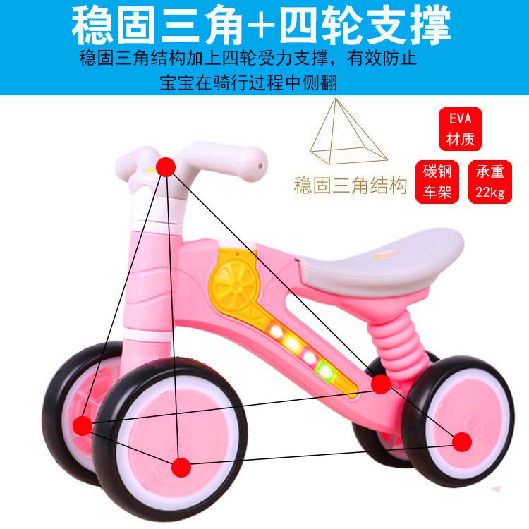 • 商品名称:平衡车无脚踏1-3岁四轮幼儿园溜溜车宝宝平行车助步车儿童滑行车