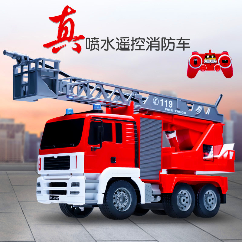 遥控消防车喷水云梯救火工程车充电男孩儿童玩具模型