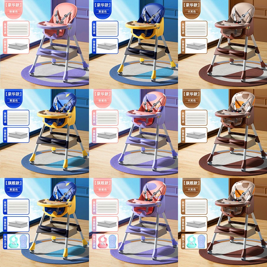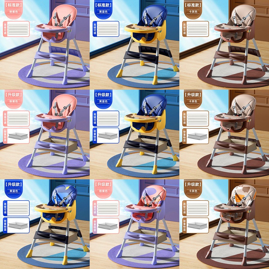 标准款【高矮可调+纯色PU软垫】餐盘可锁(96.00),升级款【高矮可调+置物篮+纯色PU软垫】餐盘可锁(102.00),升级款【高矮可调+置物篮+炫彩PU软垫+】餐盘可锁(108.00),豪华款【高矮可调+置物篮+纯色PU软垫+轮子】餐盘可锁(108.00),豪华款【高矮可调+置物篮+炫彩PU软垫+轮子】餐盘可锁(111.00),旗舰款【高矮可调+置物篮+炫彩PU软垫+轮子】+围兜凉席(117.00)。折叠款(带轮子)黄蓝/粉紫【360°旋转带刹车】(136.00),折叠款(无轮子)黄蓝/粉紫【置物篮+PU垫】(123.00)。颜色:粉色,蓝色,卡其。