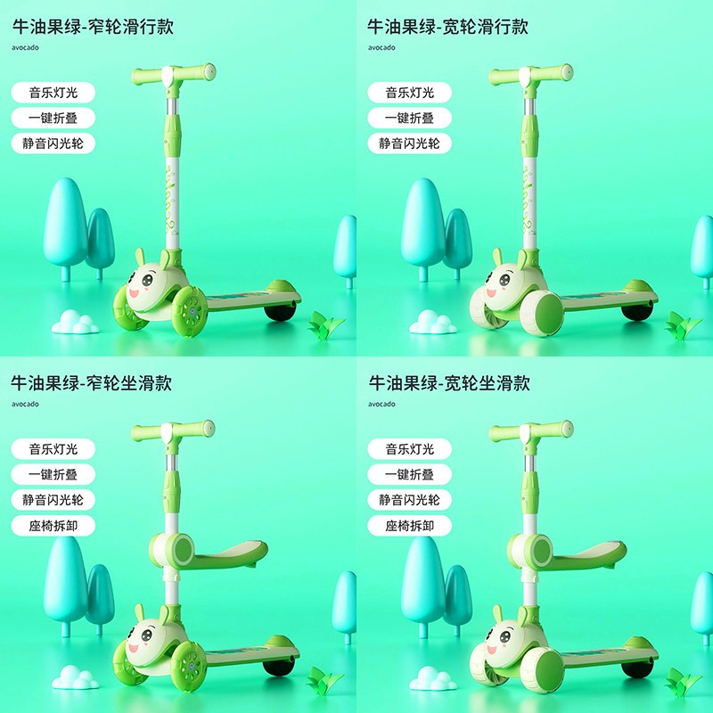 窄轮滑行款【灯光音乐】(39.00),宽轮滑行款【灯光音乐】(49.00),窄轮坐滑款【座椅+灯光音乐】(45.00),宽轮坐滑款【座椅+灯光音乐】(53.00),宽轮坐滑推款【座椅+推把+灯光音乐】(60.00) 颜色:牛油果绿,香芋紫,洛克蓝,柠檬黄