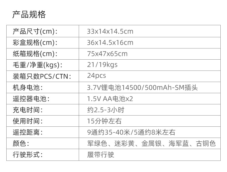 履带行驶可控炮台【9通迷彩绿】,履带行驶可控炮台【9通迷彩黄】,履带行驶可控炮台【9通银灰色】,履带行驶可控炮台【9通海军蓝】,履带行驶可控炮台【9通军绿色】,履带行驶可控炮台【9通暗金色】,履带行驶【5通迷彩绿】,履带行驶【5通纯银色】