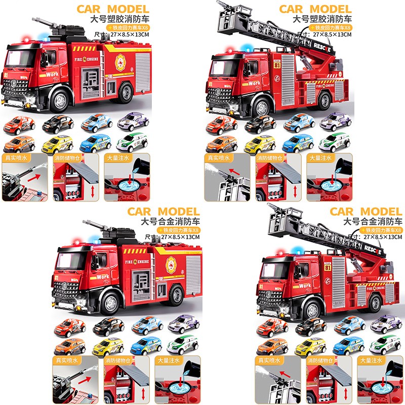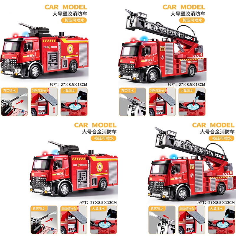 【塑胶款】超大号水罐车(可喷水/声光音乐)(37.00),【塑胶款】超大号云梯车(可喷水/声光音乐)(39.00),【合金款】超大号合金水罐车(可喷水/方向盘喇叭)(48.00),【合金款】超大号合金云梯车(可喷水/方向盘喇叭)(49.00),【塑胶款】超大号水罐车(可喷水/声光音乐)+8只滑行车(43.00),【塑胶款】超大号云梯车(可喷水/声光音乐)+8只滑行车(45.00),【合金款】超大号合金水罐车(可喷水/方向盘喇叭)+8只滑行车(54.00),【合金款】超大号合金云梯车(可喷水/方向盘喇叭)+8只滑行车(55.00)