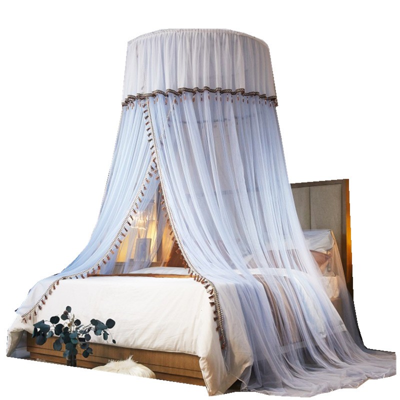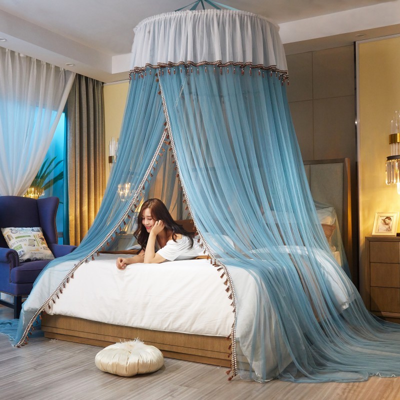 • 商品名称:吊顶蚊帐公主风圆顶落地式欧式纹帐床幔简约吊挂单门文帐