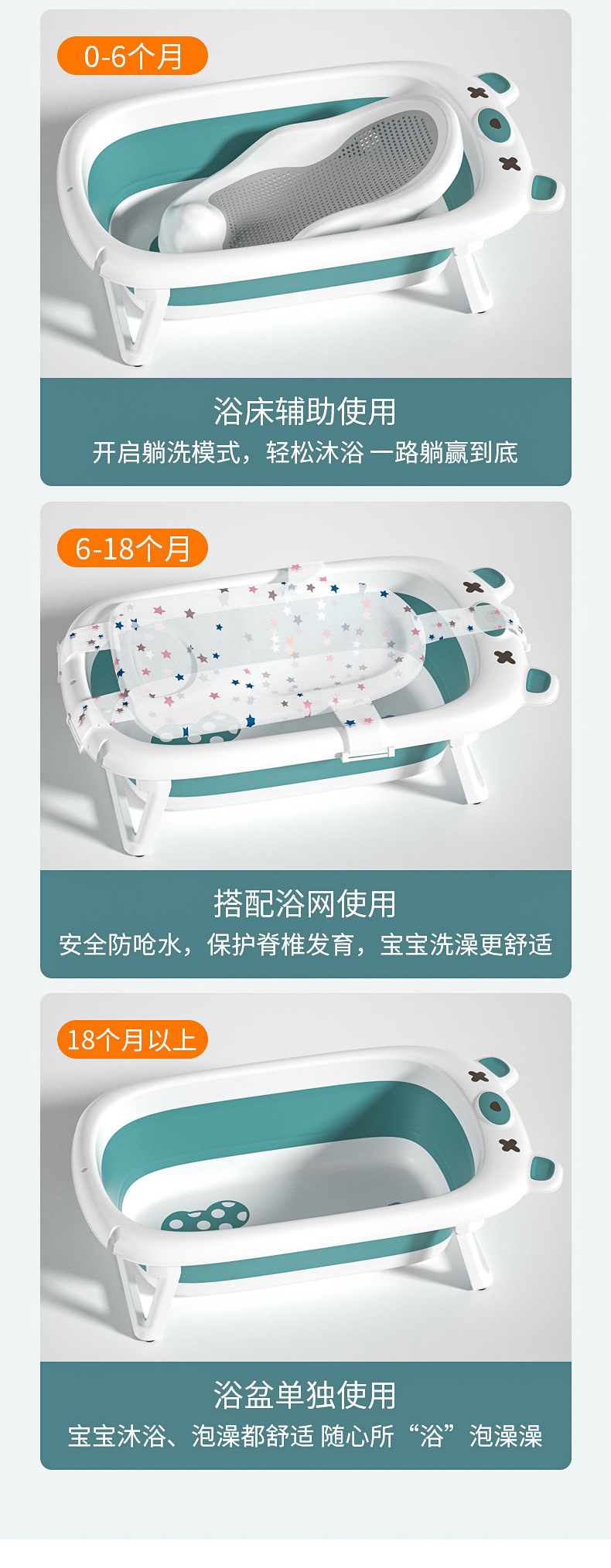 【感温款】(44.00),【感温款】+浴床(69.00),【感温款】+悬浮垫(66.00),【感温款】+浴网(61.00),【感温款】+浴床+悬浮垫(90.00),【感温款】+浴床+浴网(85.00),【感温款】+浴床+悬浮垫+浴网(103.00),【感温款】+悬浮垫+浴网(82.00)。颜色:绿 粉 橙