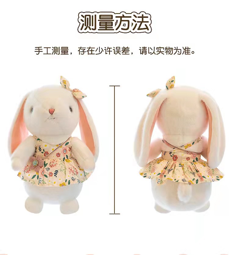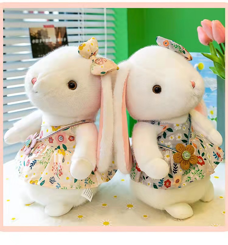 • 商品名称:新款田园兔公仔毛绒玩具可爱花朵印花连衣裙小兔子抓机娃娃玩偶