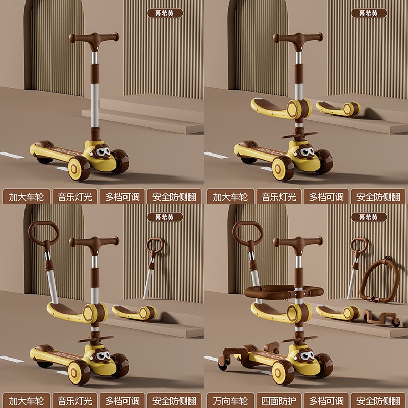 • 商品名称:四合一小孩可坐可推三合一滑滑溜溜车 儿童滑板车1一3-6岁男女宝宝