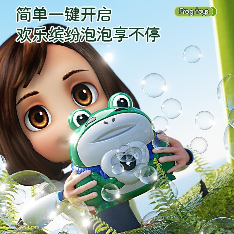 电动青蛙电动泡泡枪自动泡泡相机儿童卡通吹泡泡相机灯光音乐青蛙