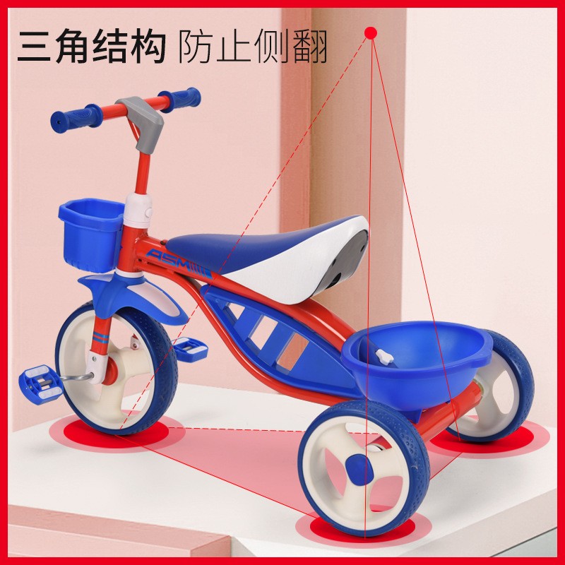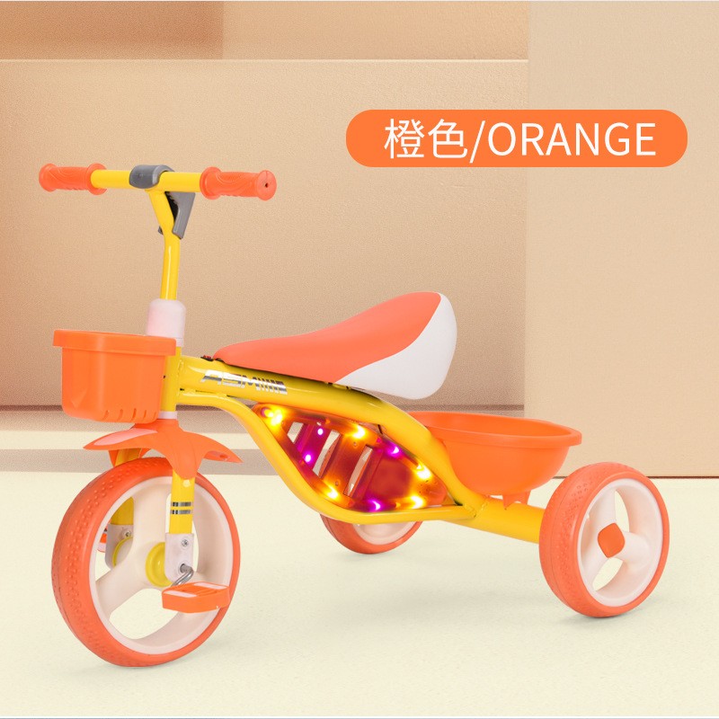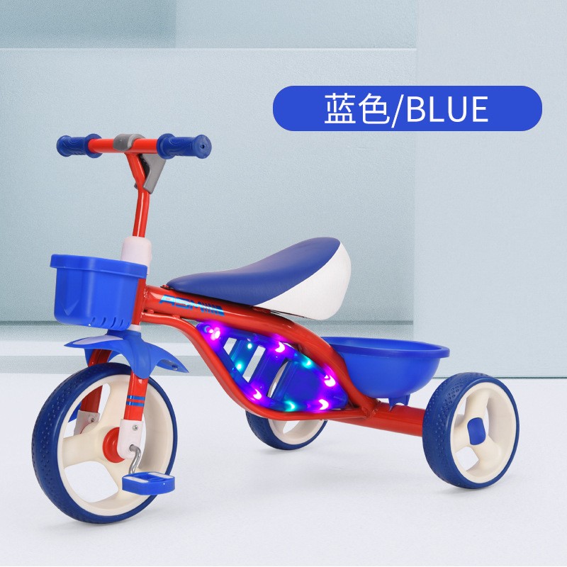 • 商品名称:儿童三轮车带灯光音乐脚踏车免充气轮宝宝推车自行车供应