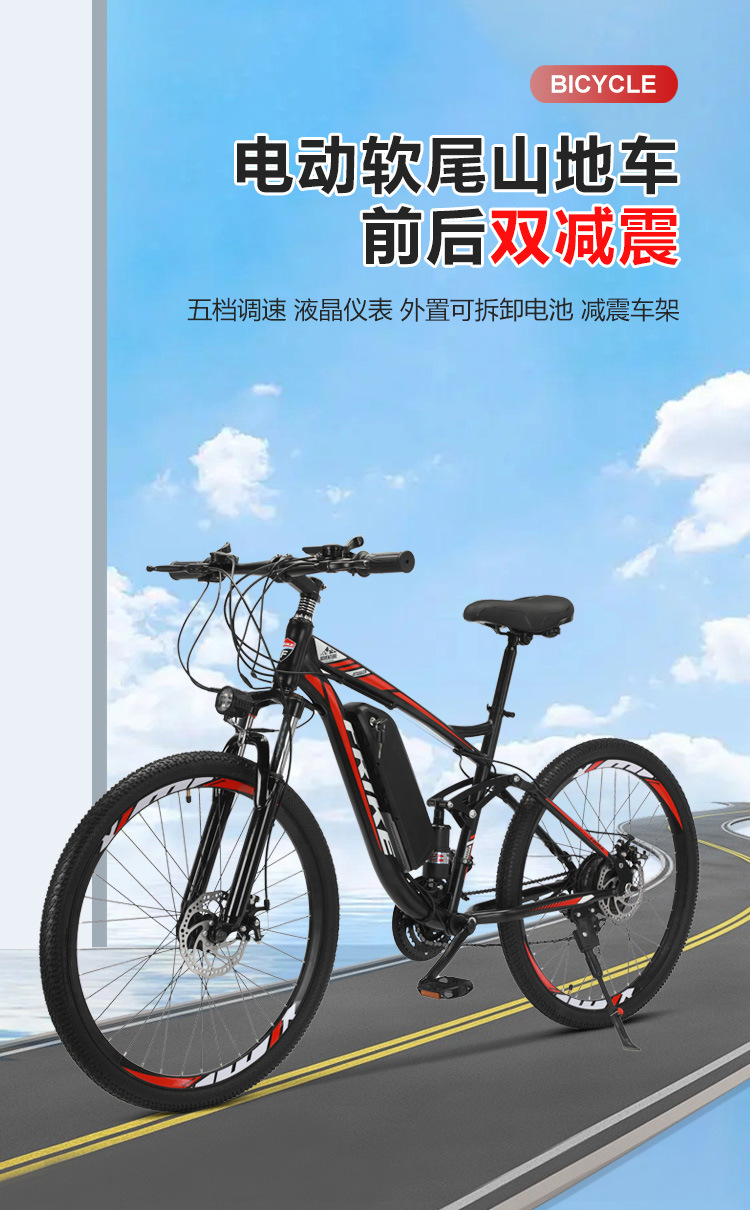 • 商品名称:电动软尾山地自行车锂电双减震越野变速助力车速降电动车