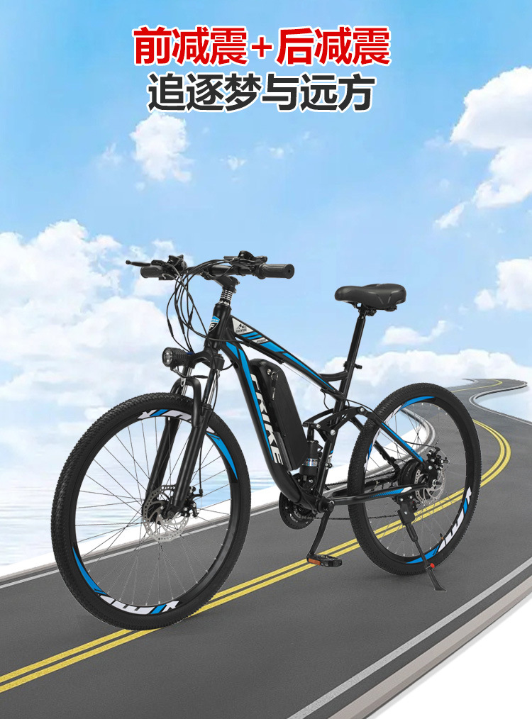 电动软尾山地自行车锂电双减震越野变速助力车速降电动车