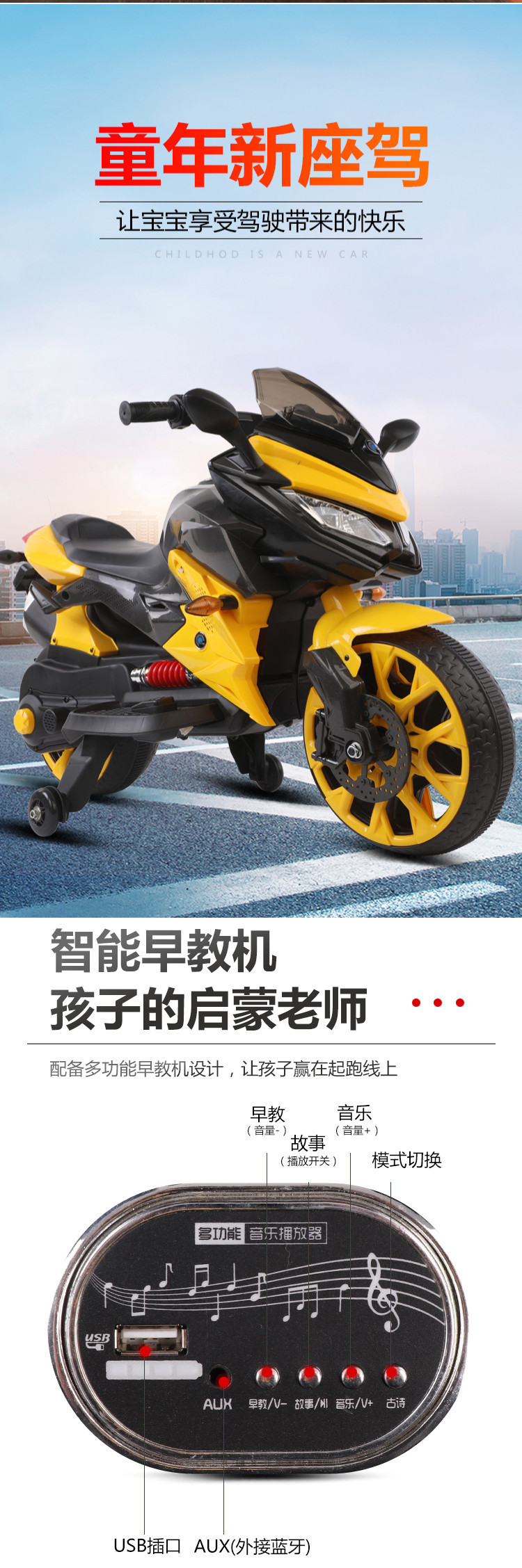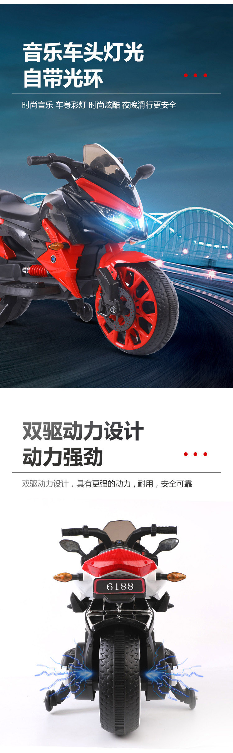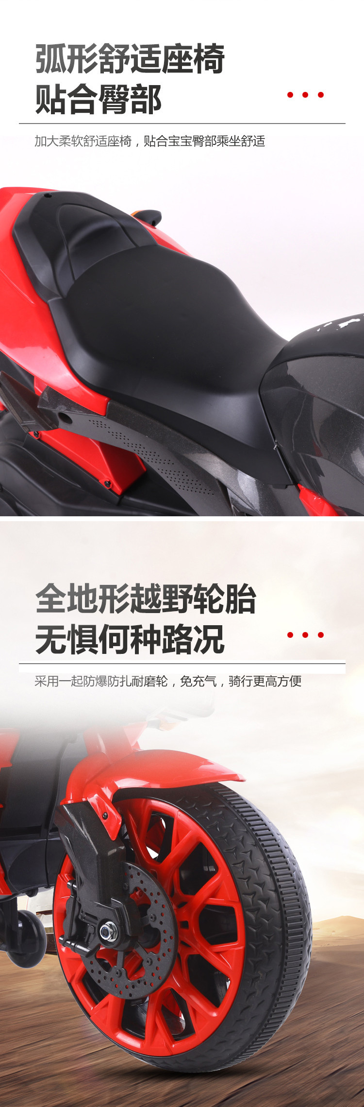 单电(电瓶12.45x1)双驱动。音乐灯光。早教功能。英语。连接USB 。电量显示。重低音喇叭。加大座椅,12v电压