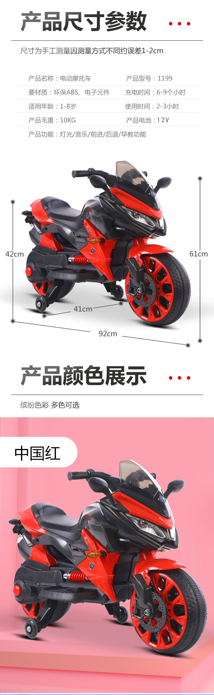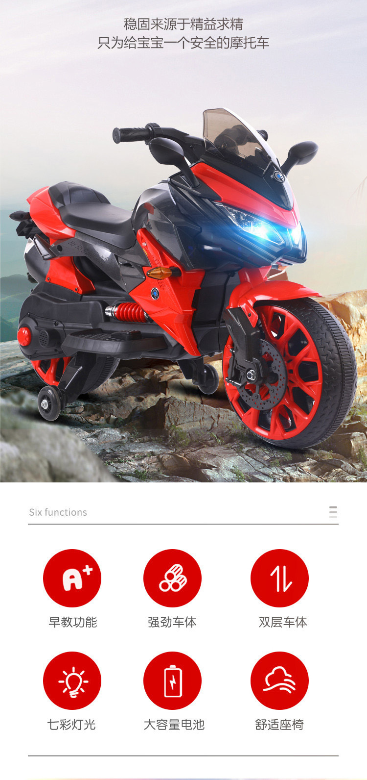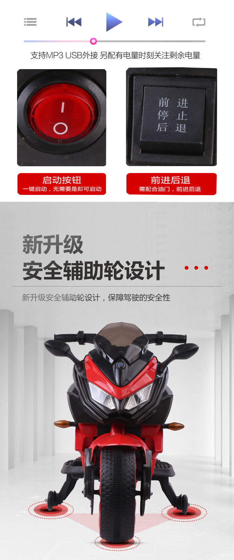单电(电瓶12.45x1)双驱动。音乐灯光。早教功能。英语。连接USB 。电量显示。重低音喇叭。加大座椅,12v电压