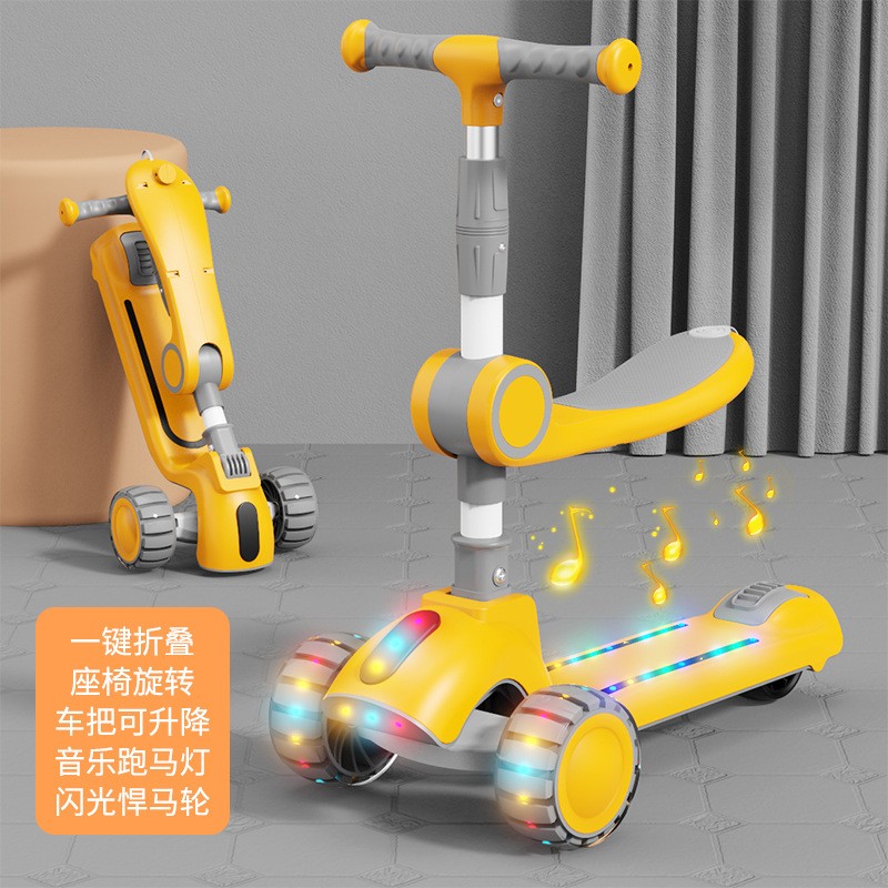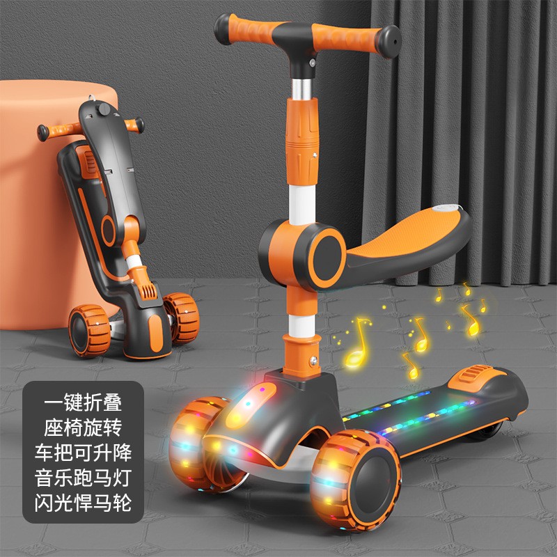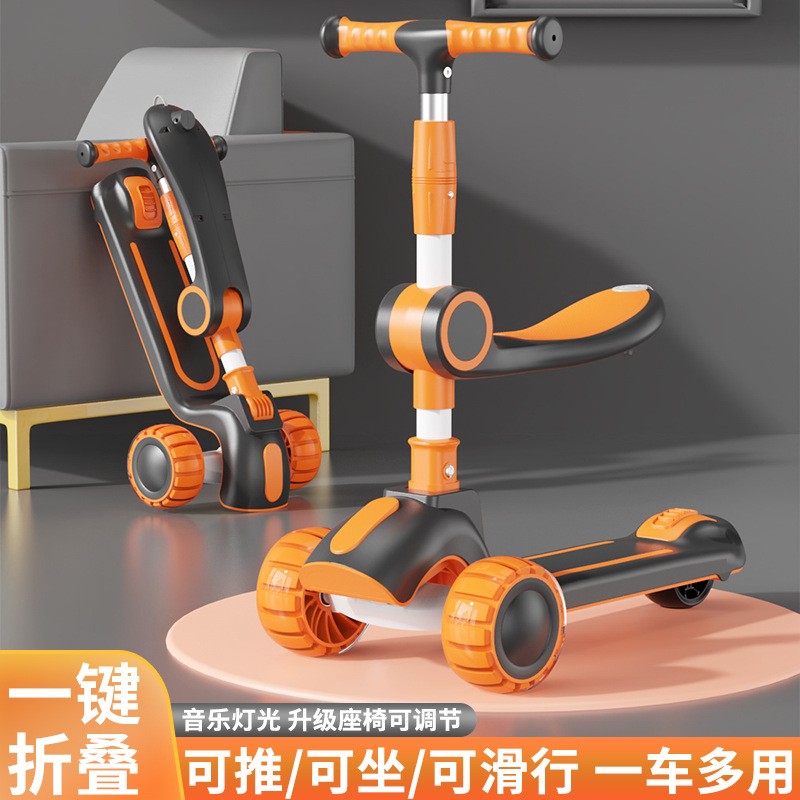 • 商品名称:新款儿童三合一折叠滑板车1-3-6岁男女宝宝滑行车可坐可骑溜溜车
