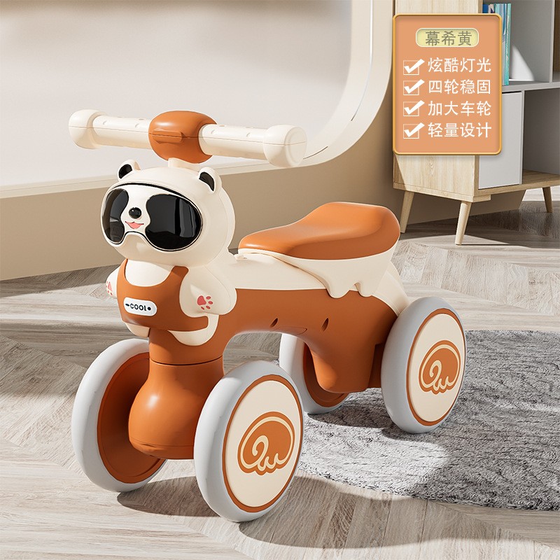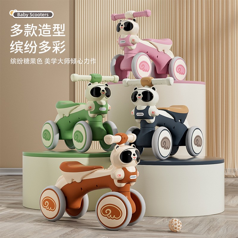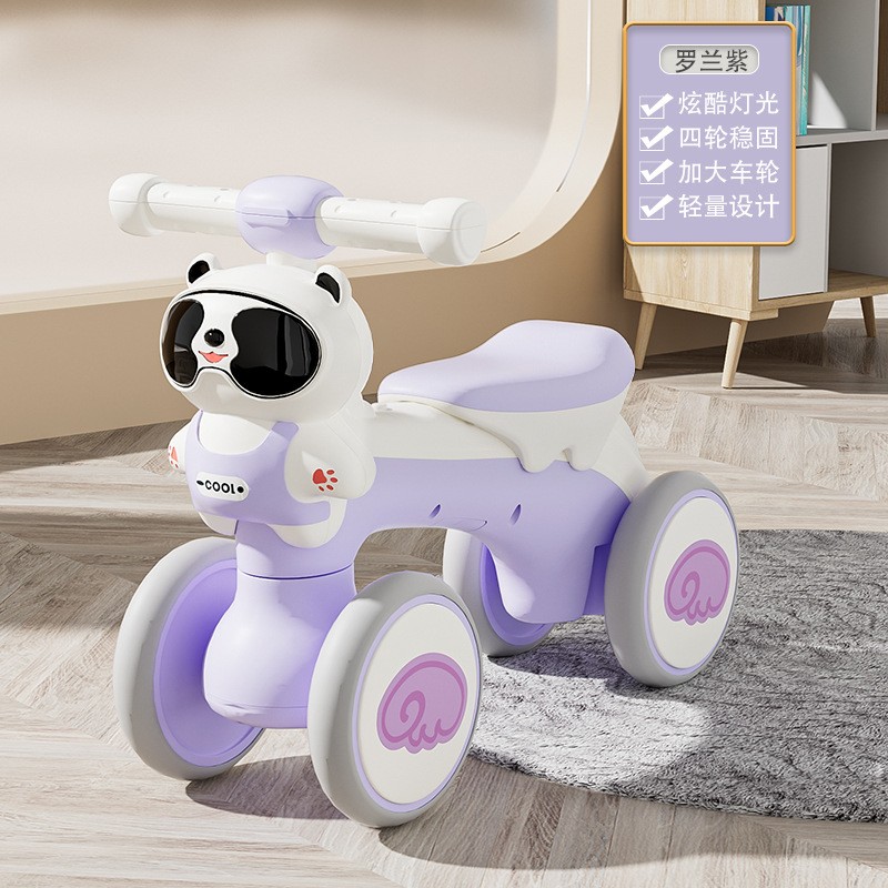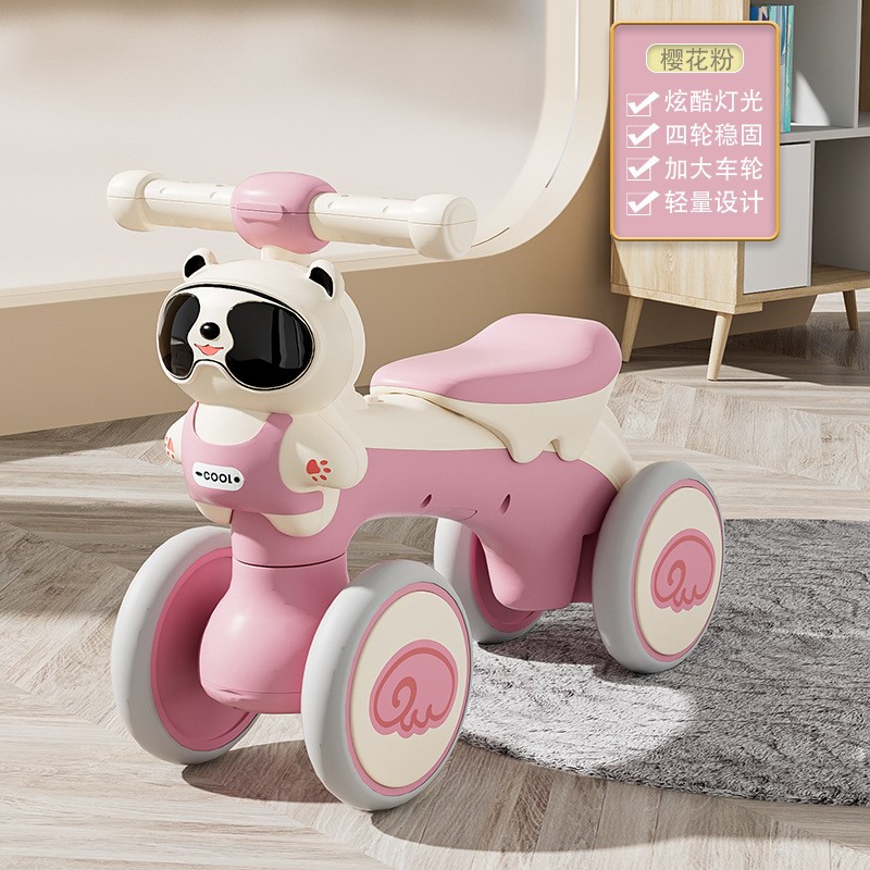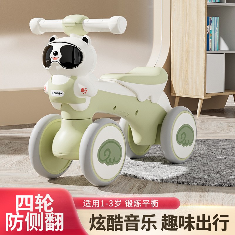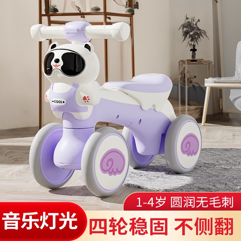 平衡车儿童1-3岁熊猫四轮滑行车带音乐灯光学步车玩具车