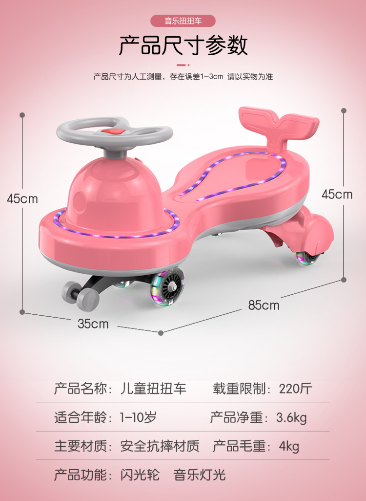 • 商品名称:儿童扭扭车男女宝宝扭扭车带音乐灯光玩具溜溜车1-3-6岁摇摆车