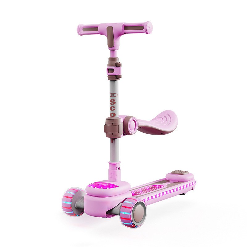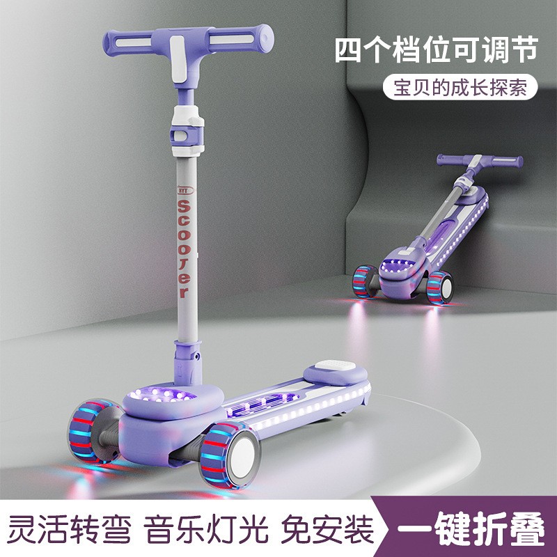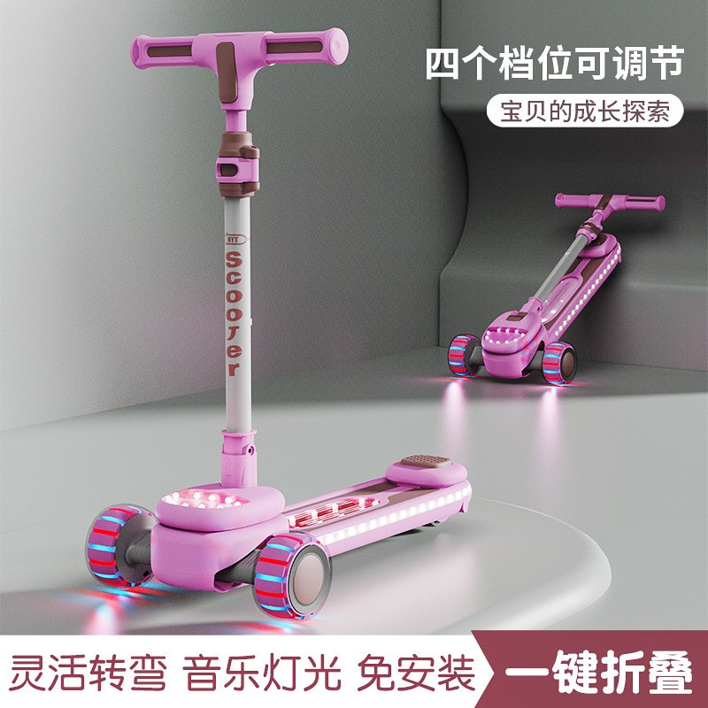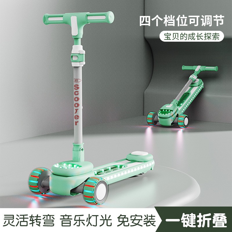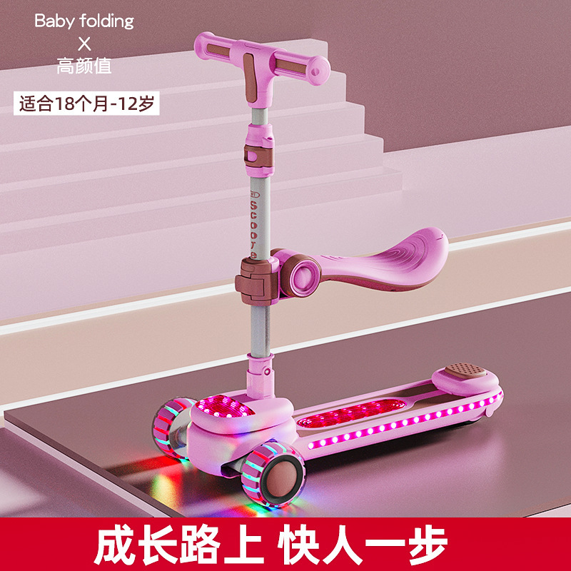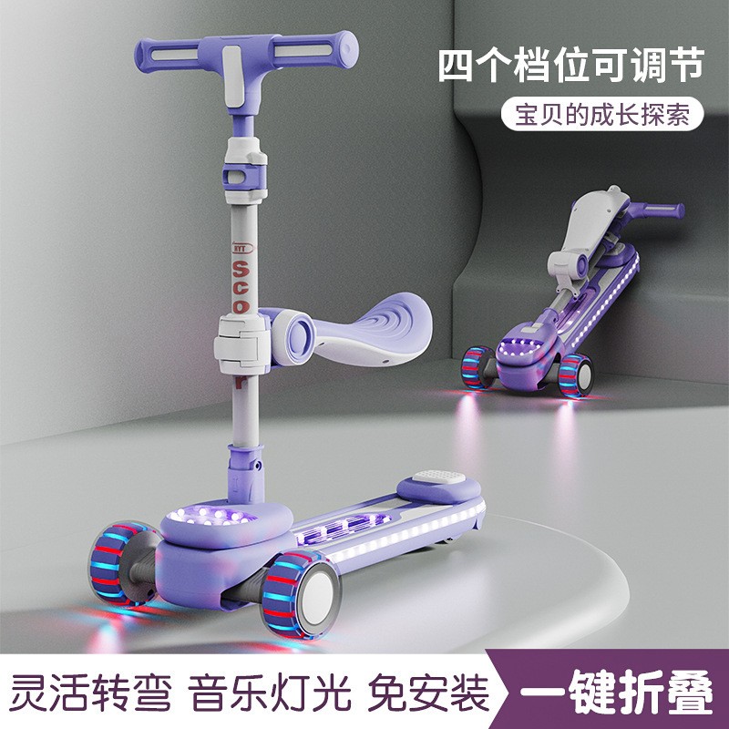 儿童新款滑板车2-12岁溜溜车带音乐灯光中大童滑行车带座滑板车