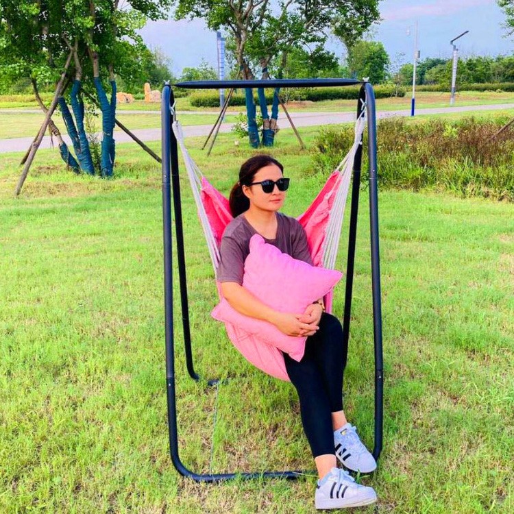 • 商品名称:折叠双人秋千椅家用卧室悬挂吊椅靠垫挂户外躺寝室可盘腿吊床架子