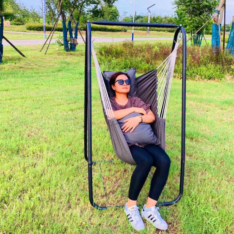 折叠双人秋千椅家用卧室悬挂吊椅靠垫挂户外躺寝室可盘腿吊床架子