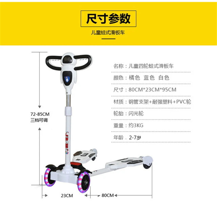• 商品名称:滑板车儿童玩具剪刀蛙式车多种功能4到8岁双脚分开初学者3—6岁宝宝