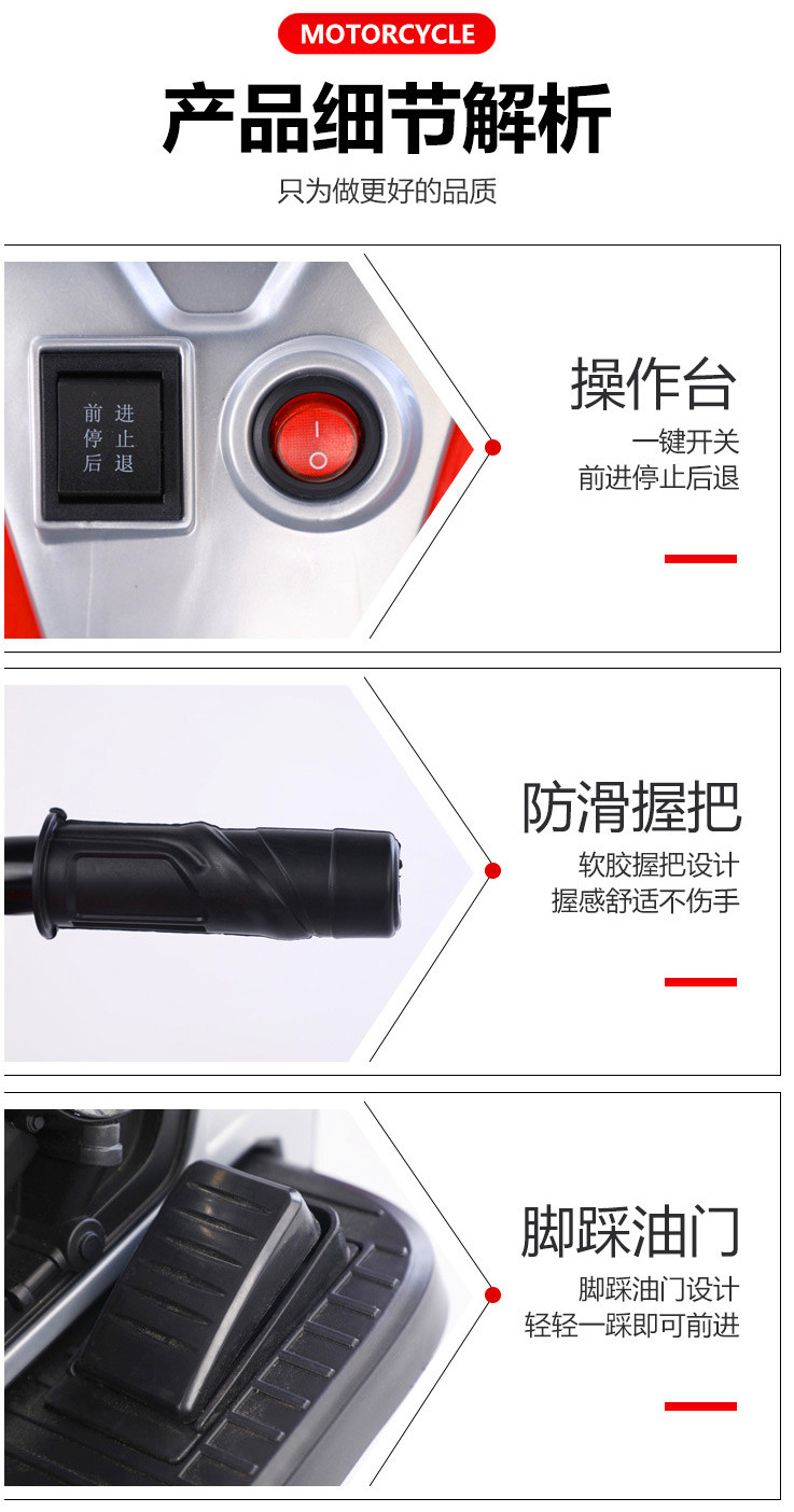 • 商品名称:新品儿童电动摩托车儿童三轮车灯光音乐儿童电瓶车3-12岁地摊童车
