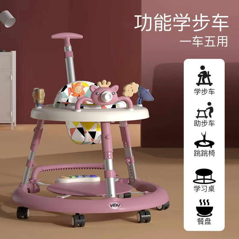 新版多种功能助步车--学步/助步/跳跳椅/学习桌/餐盘多种功能为一体,一车多用,加宽静音轮带刹车功能,可调节快慢,坐垫360度旋转,可拆卸音乐盘带早教模式音乐彩色灯光,四档调节高度适合不同身高的宝