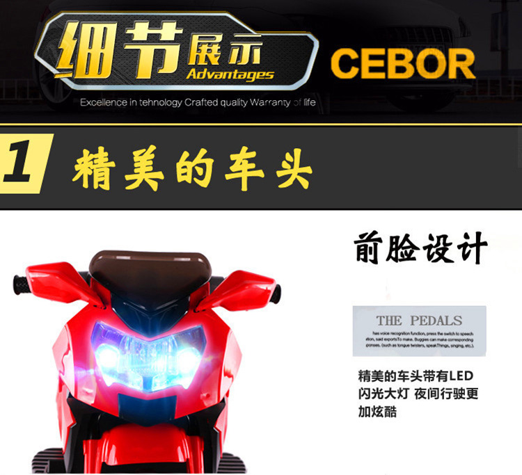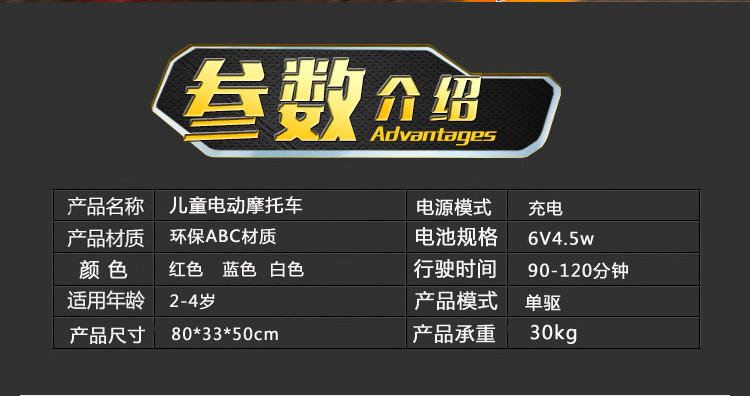 • 商品名称:儿童摩托车充电 宝宝玩具车1-3岁可坐童车电瓶车小孩电动摩托车
