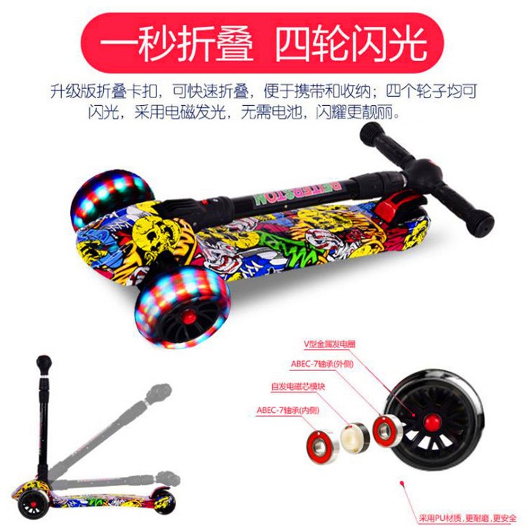 • 商品名称:男孩女孩折叠儿童滑板车闪光四轮2-3-6-12岁小孩脚踏滑板车溜溜车