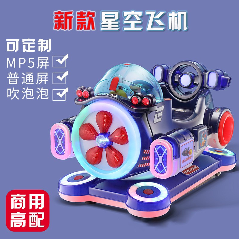 2023新款吹泡泡星空飞机摇摇车儿童电动投币摇摆机动画互动商超