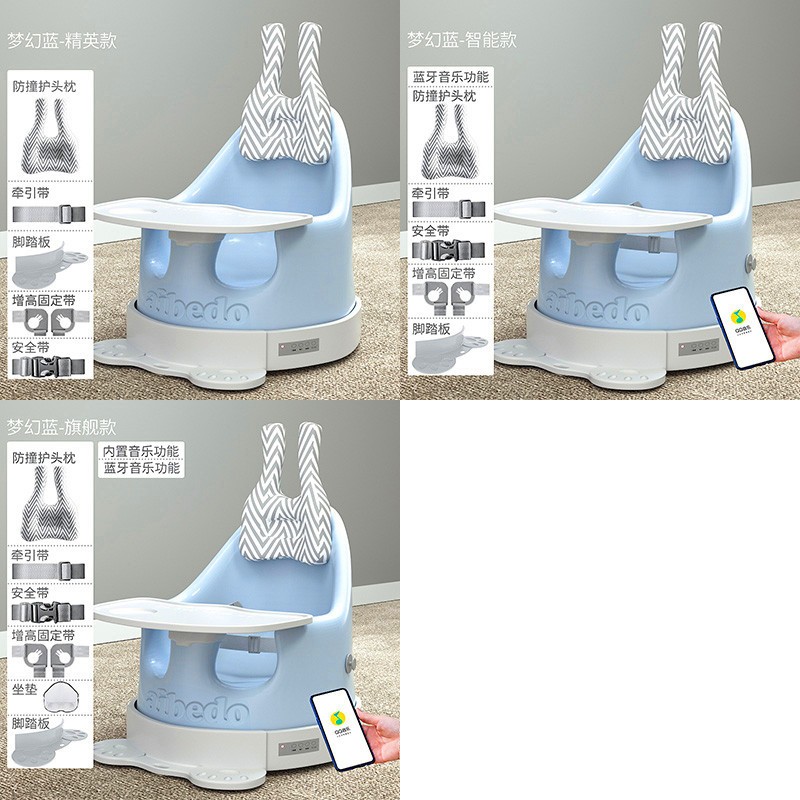 精英款【高级灰餐体+护头枕+牵引带+脚踏板】(173.00),智能款【高级灰餐体+护头枕+牵引带+脚踏板】(197.00),旗舰款【餐体+送八大礼包】(213.00)。颜色:高级灰,香草绿,萌宝粉,浅米色,梦幻蓝