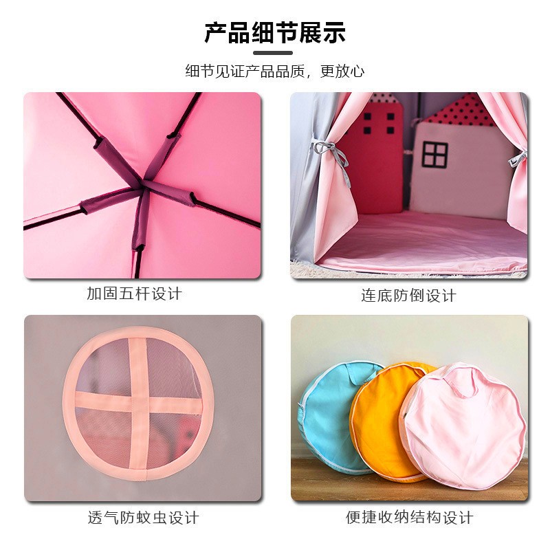 • 商品名称:儿童帐篷游戏屋玩具屋室内男女孩粉色蒙古包过家家公主城堡