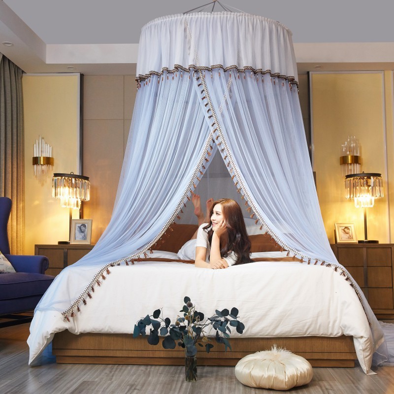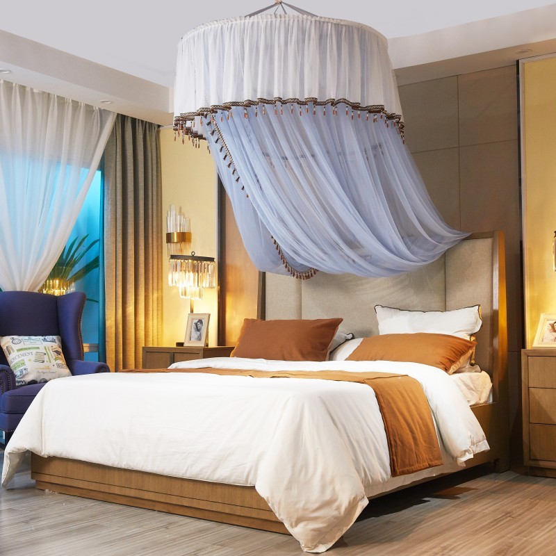 • 商品名称:吊顶蚊帐公主风圆顶落地式欧式纹帐床幔简约吊挂单门文帐