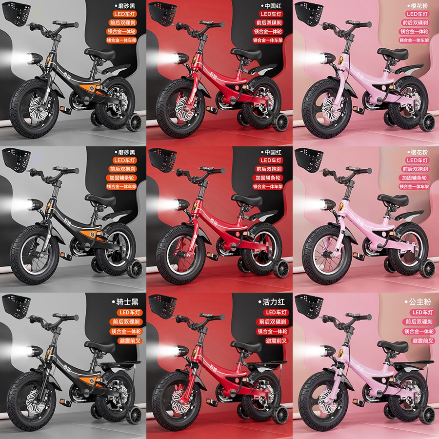 黑色【双碟刹】一体轮,红色【双碟刹】一体轮,粉色【双碟刹】一体轮,黑色【双碟刹】一体轮/后座,红色【双碟刹】一体轮/后座,粉色【双碟刹】一体轮/后座,黑色【双包刹】辐条轮,红色【双包刹】辐条轮,粉色【双包刹】辐条轮,黑色【双碟刹】避震/一体轮,红色【双碟刹】避震/一体轮,粉色【双碟刹】避震/一体轮。12寸(350.00)