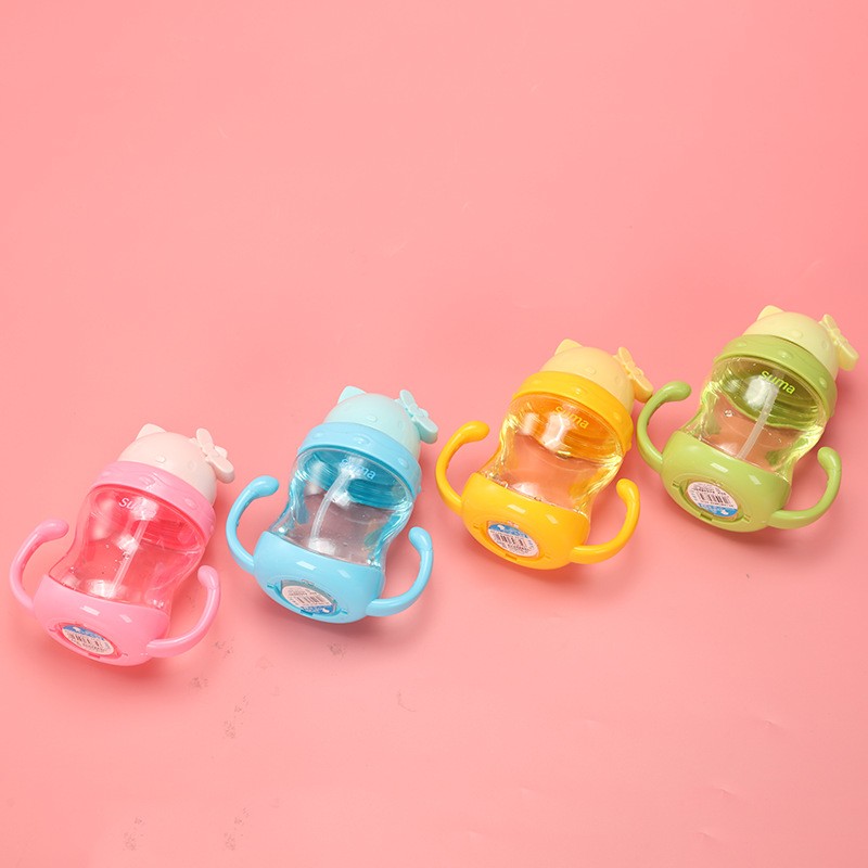 儿童手握卡通塑料水杯夏季创意幼儿园防摔防漏吸管杯手拿塑料水杯