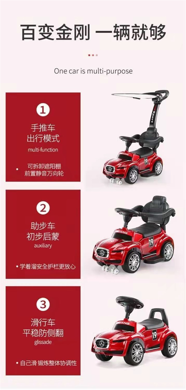 红色滑行车+推把脚踏,蓝色滑行车+推把脚踏,橙色滑行车+推把脚踏,白色滑行车+推把脚踏。烤漆红色+推把脚踏,烤漆蓝色+推把脚踏。烤漆+12元