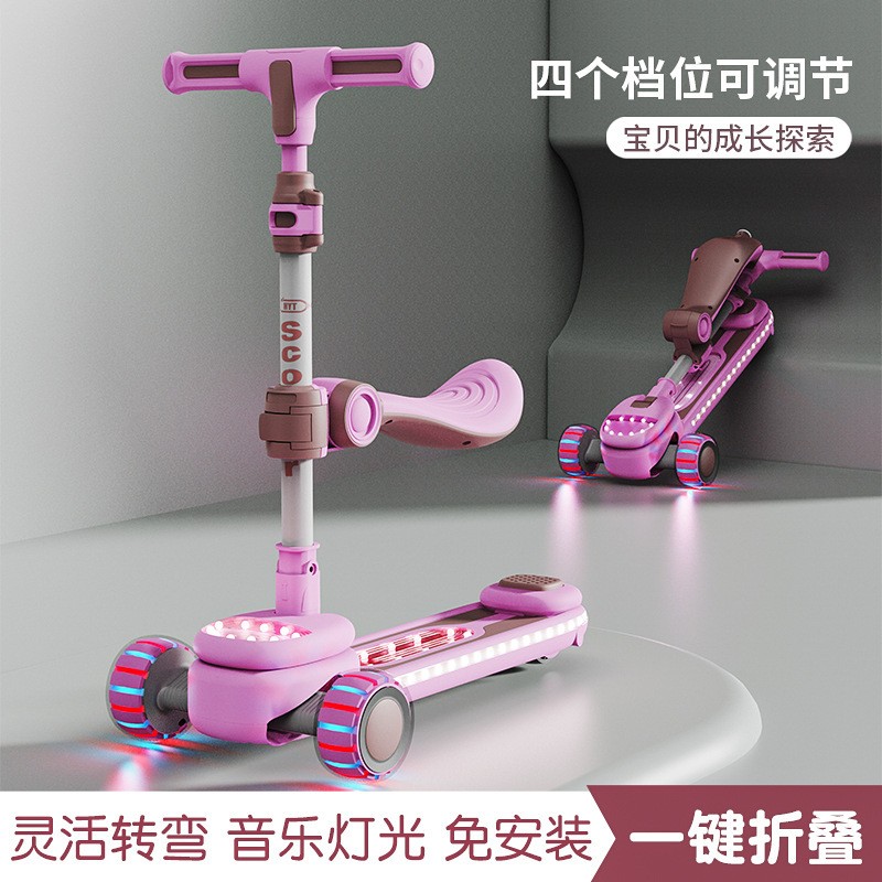 儿童新款滑板车2-12岁溜溜车带音乐灯光中大童滑行车带座滑板车