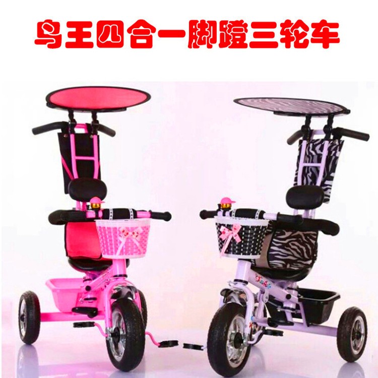 三轮车 四合一脚蹬三轮车带棚儿童三轮车 脚踏车童车带后框带推把